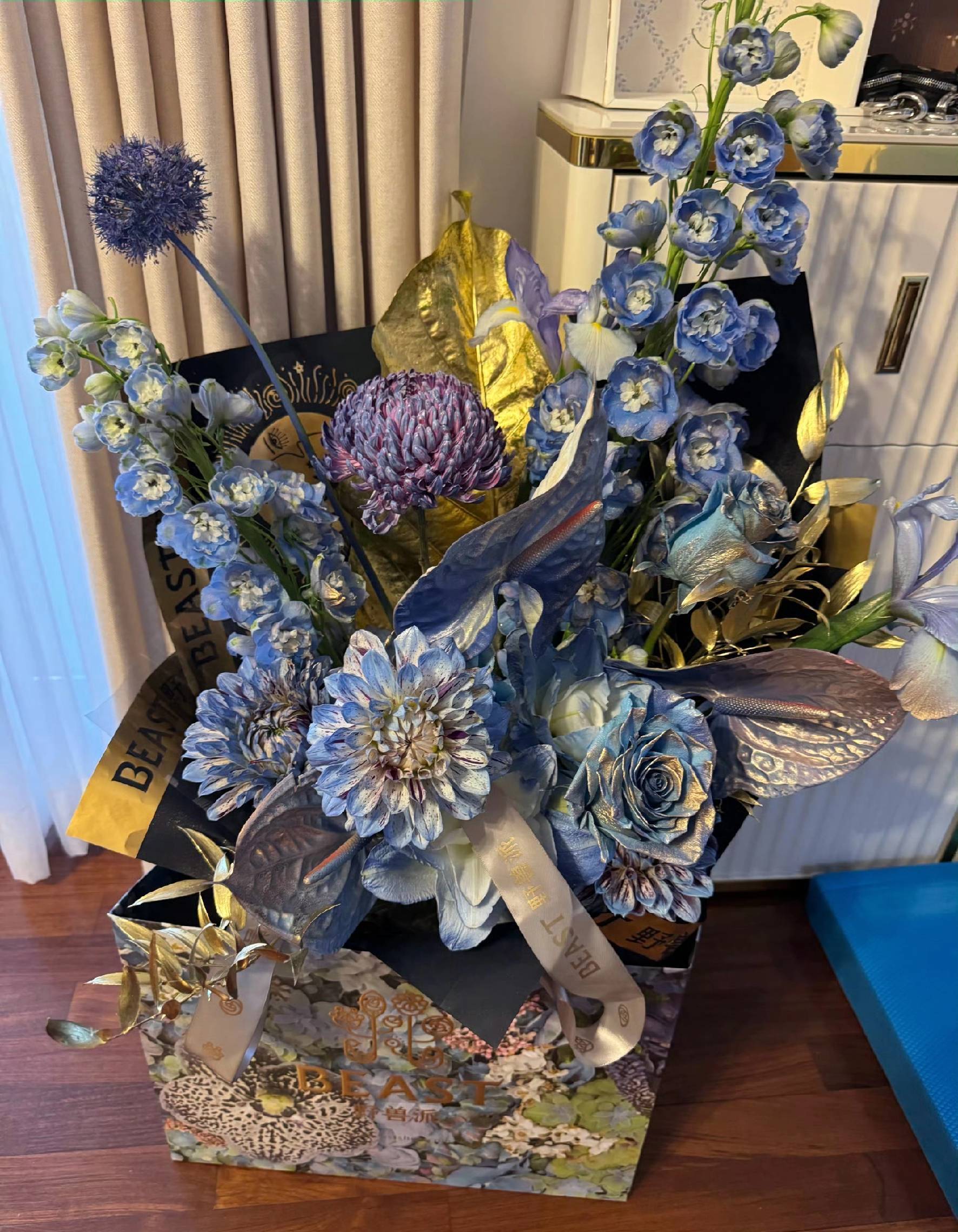 恩利这个儿子则给伊能静买了一束蓝金色的花,这束花很漂亮,给人一种华丽又优雅沉稳的感觉,和伊能静的性格很像,也很适合伊能静如今的年纪,这束花的价格也不便宜。